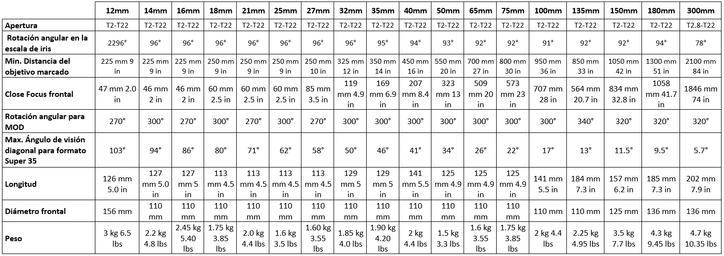 Lente Cooke S4 16, 21, 25, 32, 50, 75 mm PL