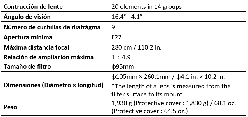 Especificaciones